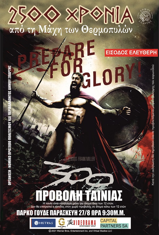 «Εορταστικές εκδηλώσεις για τα 2.500 Χρόνια από τη Μάχη των Θερμοπυλών – Προβολή ταινίας ‘’300” » Ο Δήμος Σπάρτης και το Νομικό Πρόσωπο Πολιτισμού και Περιβάλλοντος, συνεχίζοντας τις εορταστικές εκδηλώσεις για τα 2.500 Χρόνια από τη Μάχη των Θερμοπυλών, σας προσκαλεί στην προβολή της ταινίας «300», την Παρασκευή 27 Αυγούστου και ώρα 9.30 μ.μ στο πάρκο Γουδέ*. Είσοδος ελεύθερη. (Το… Continue reading Στο Πάρκο Γουδέ τελικά η προβολή της ταινίας 300
