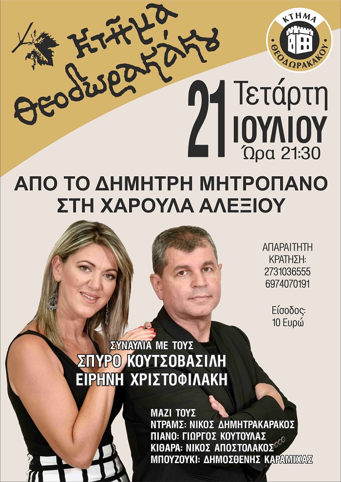 Σας προσκαλούμε την Τετάρτη 21 Ιουλίου και ώρα 21:30 στο Κτήμα