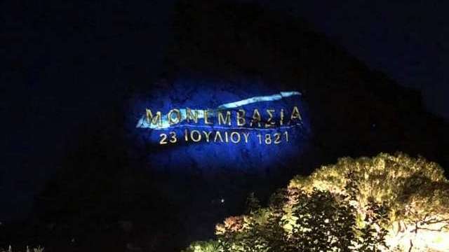 Την προηγούμενη ημέρα, Πέμπτη 22 Ιουλίου 2021, στα πλαίσια των εκδηλώσεων για τα 200 χρόνια από την Ελληνική Επανάσταση και την Απελευθέρωση του Κάστρου, έγινε επετειακός φωτισμός του βράχου της Μονεμβασίας με ταυτόχρονη προβολή της Ελληνικής σημαίας, εμπλουτισμένη με οπτικά εφέ και τρισδιάστατη προβολή οπτικών, στοιχείων.