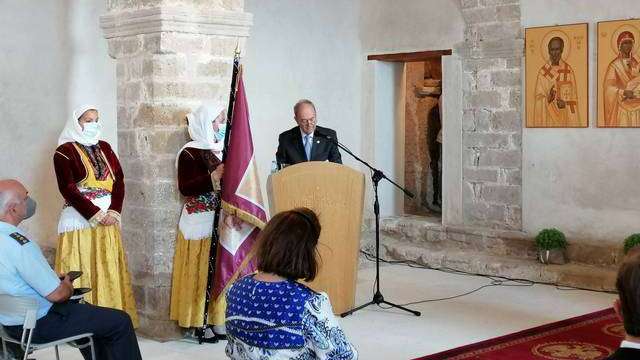 Σε αυτό λοιπόν τον Ιερό Χώρο του Αγίου Νικολάου, την Παρασκευή 23 Ιουλίου 2021, μετά τα θυρανοίξια, εψάλη Αρχιερατική Θεία Δοξολογία, εις ανάμνηση της Δοξολογίας που τελέστηκε με την παράδοση του Κάστρου στους Έλληνες, χοροστατούντος του Παναγιωτάτου Μητροπολίτη Μονεμβασίας και Σπάρτης κ.κ. Ευσταθίου και παρουσία της Υπουργού Πολιτισμού και Αθλητισμού κας Λίνας Μενδώνη.