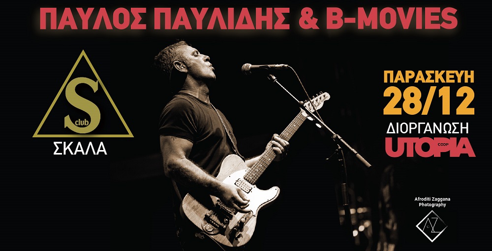Η Utopia Creative Cooperative πιστή στο στόχο της να παράγει ουσιαστικό πολιτιστικό έργο παρουσιάζει στη Λακωνία, στη σκηνή S Live Stage, στη Σκάλα, τον εξαιρετικό δημιουργό Παύλο Παυλίδη με τους B-Movies.