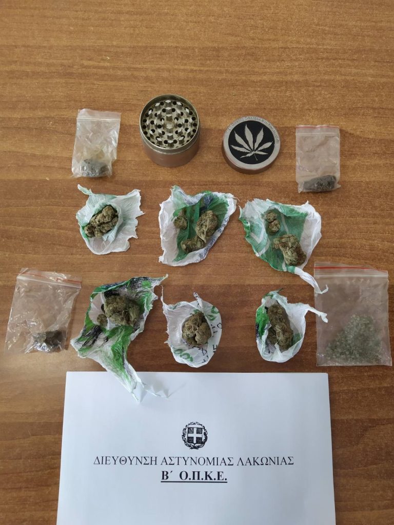 Συνελήφθησαν, χθες (8.6.2020) το απόγευμα, στους Μολάους Λακωνίας, από αστυνομικούς της Ομάδας Πρόληψης και Καταστολής του Εγκλήματος (Ο.Π.Κ.Ε.) Λακωνίας, τρεις (3) ημεδαποί, δύο (2) 24χρονοι και 29χρονος, αντίστοιχα, γιατί σε έρευνα που έγινε σε όχημα, βρέθηκαν συνολικά και κατασχέθηκαν ποσότητες κάνναβης, συνολικού βάρους -9,1- γραμμαρίων και τρίφτης με υπολείμματα κάνναβης. Προανάκριση διενεργεί το Αστυνομικό Τμήμα Μολάων.