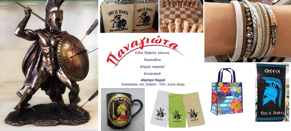 Μεγάλη γκάμα προϊόντων για τους επισκέπτες και τους τουρίστες με σουβενίρ και ενθύμια Σπάρτης!