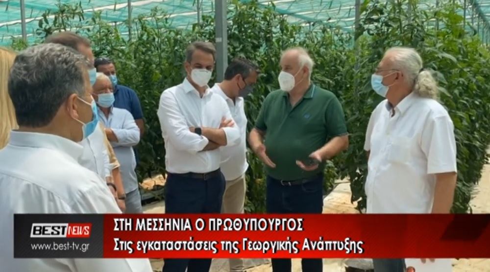 Συνεχίζει τις επισκέψεις σε περιοχές της Μεσσηνίας ο Πρωθυπουργός Κυριάκος Μητσοτάκης μια εξ αυτόν και στις εγκαταστάσεις της Γεωργικής Ανάπτυξης με τον Διευθυντής της ΔΑΟΚ Τριφυλίας κ.Παρασκευόπουλο να τον ξεναγεί σε καλλιέργειες