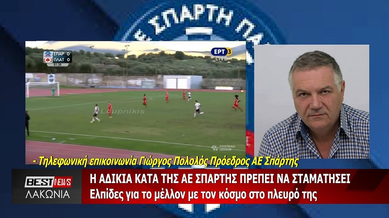 Ο πρόεδρος της ΑΕ Σπάρτης Γιώργος Πολολός μίλησε στο Λακωνικό Δελτίο Ειδήσεων της Τηλεόρασης Best για την αδικία στην φάση του πέναλτι στον αγώνα με τον Πλατανιά λέγοντας πως ο διαιτητής ζήτησε συγνώμη για την συγκεκριμένη φάση…αλλά πλέον το αποτέλεσμα δεν αλλάζει. Είναι κρίμα οι διαιτητές να μην σέβονται την προσπάθεια των ποδοσφαιριστών τόνισε με… Continue reading Πολολός “Ο Διαιτητής ζήτησε συγνώμη – Προχωράμε με σύμμαχο τον κόσμο μας” – Βίντεο