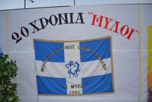 20 χρόνια «ΜΥΛΟΙ», 20 χρόνια προσφοράς στα πολιτιστικά δρώμενα του τόπου. Η δασκάλα και Πρόεδρος του Συλλόγου, Κα Φανή Κολλιάκου , πάντα μαζί με τους μαθητές της, ταξίδεψαν για μία ακόμα φορά το κοινό σ’ όλες τις γωνιές της Ελλάδας, μέσα από τους ελληνικούς χορούς και την ελληνική παραδοσιακή μουσική που με τόσο μεράκι υπηρετούν χρόνια τώρα.