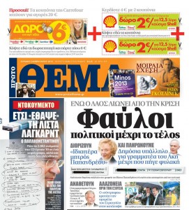 Το ΠΡΩΤΟ ΘΕΜΑ, σε σημερινό ρεπορτάζ του υποστηρίζει ότι ο Περιφερειάρχης Πελοποννήσου Πέτρος Τατούλης , έδωσε έργα 15 εκατομμυρίων σε τεχνικές εταιρείες των παιδιών του εμπλέκοντας και τον αδερφό του. Το ρεπορτάζ αναφέρει για έργα που έχουν γίνει στην Πελοπόννησο ασφαλτόστρωσης σε διάφορες περιοχές.